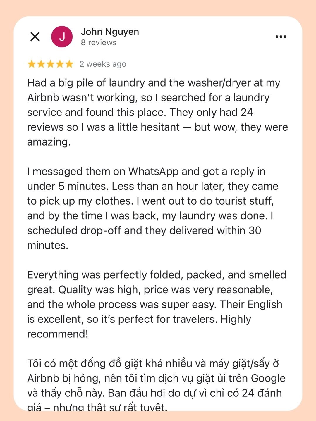 As one of the most trusted laundries in Ho Chi Minh City, we provide fast pick-up & delivery services, ideal for busy customers who value speed, quality, and care.